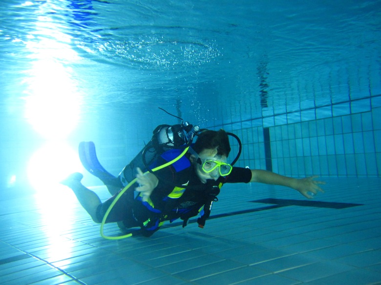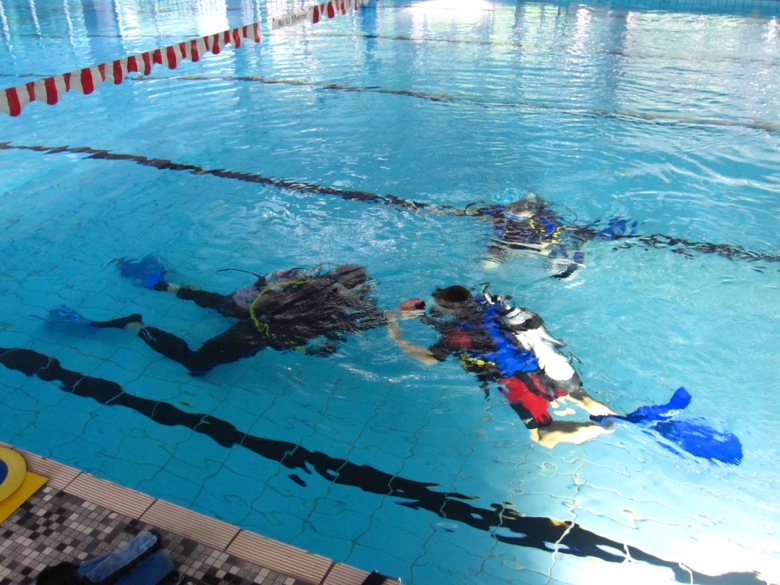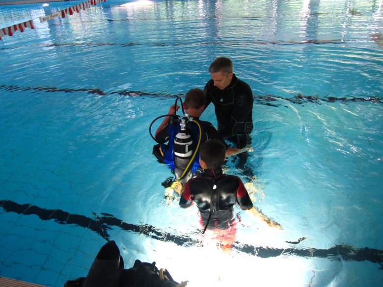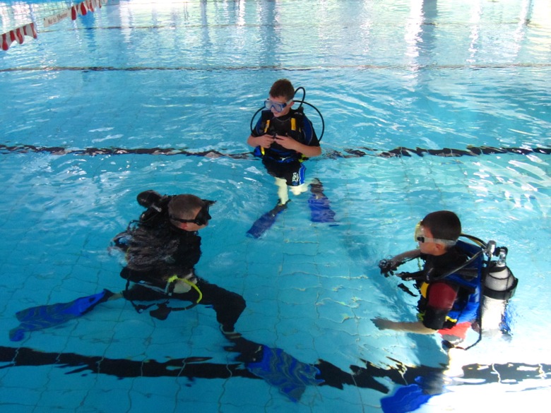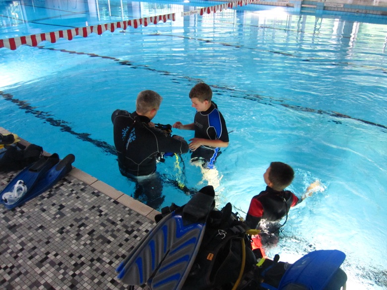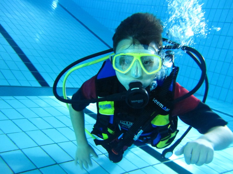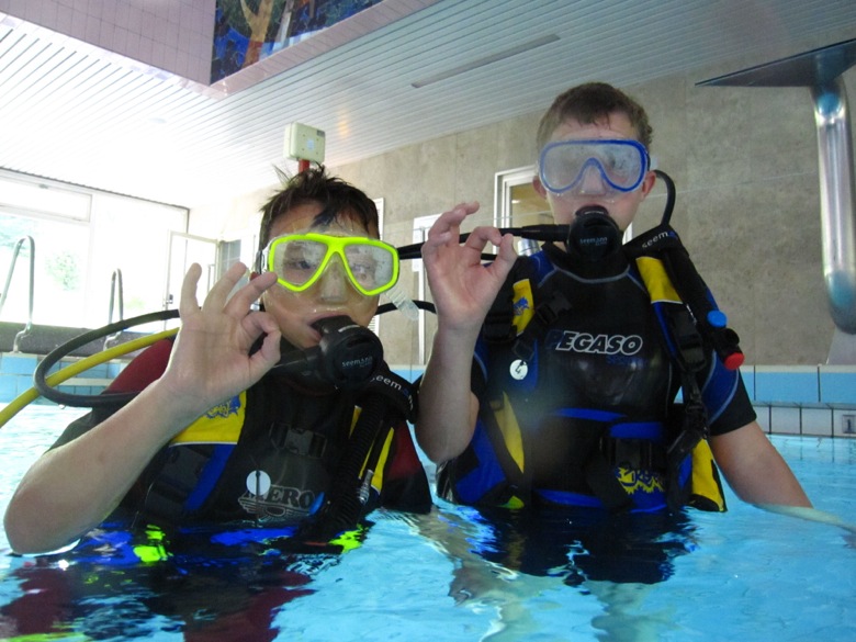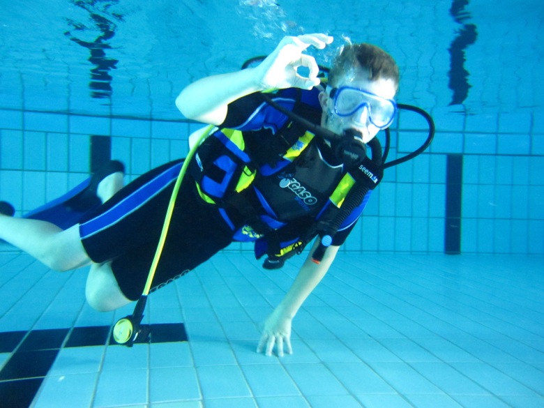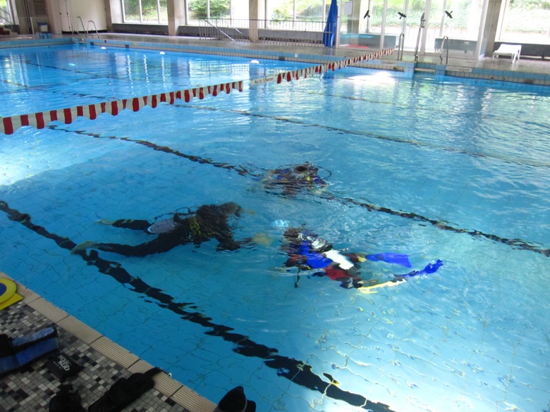 Unter dem Moto „Schwerelos Halt finden!“ sind die Abtaucher der JGS wieder unterwegs. Ihren ersten Tauchgang haben Schüler mit ihrem neuen Schulleiter Achim Bäumer im Kurfüstenbad gemacht. In diesem besonderen Tauchprojekt, welches jetzt immer mittwochs stattfindet, sollen die sozialen und emotionalen Kompetenzen der Schüler auf aussergewöhnliche Weise gefordert und gefördert werden. Zudem ist dies eine gute Gelegenheit den neuen Schulleiter besser kennen zu lernen, da die Tauchgruppe jede Woche neu zusammengestellt wird.